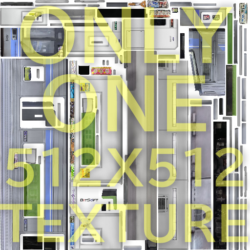 Middle cars are 3,772 tris each and end cars are 3,314 tris. The train cars can be daisy chained as many as you like. Doors can slide open. Also comes with a simple tunnel environment.