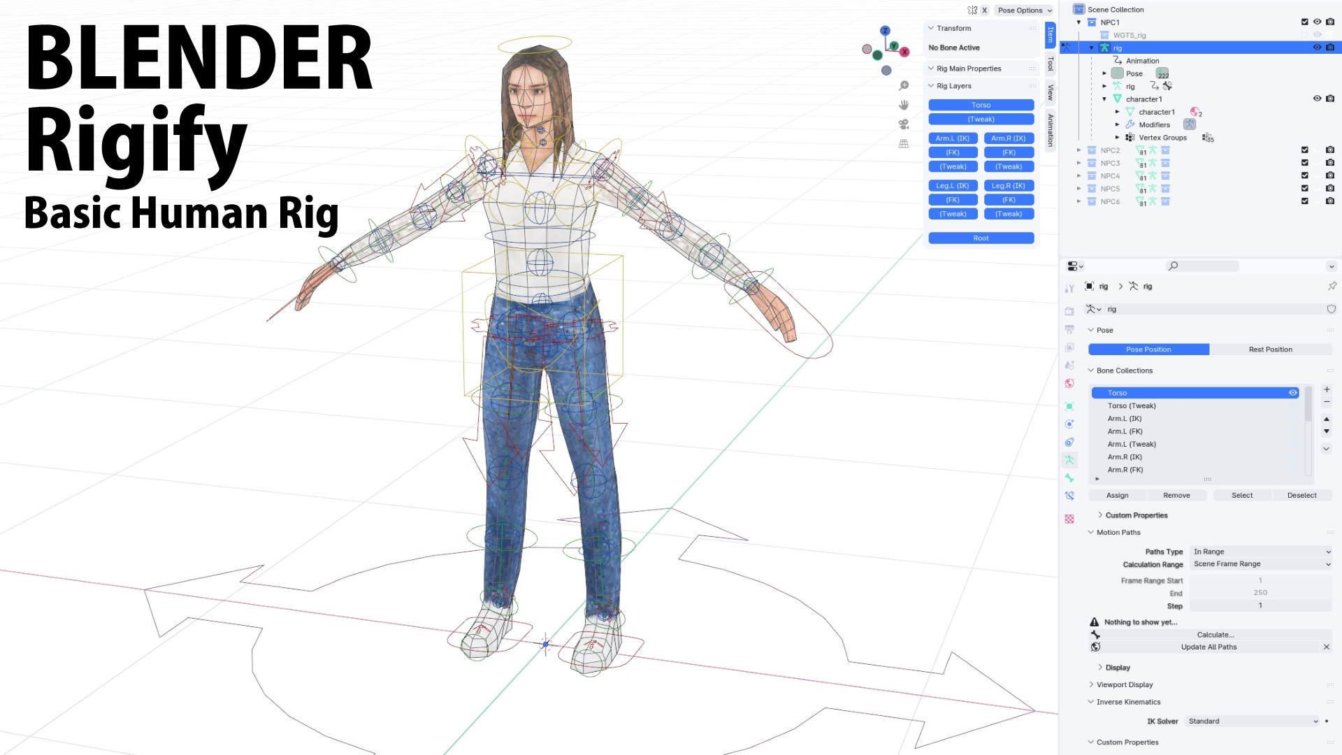 - Fully rigged using Blender Rigify Basic Human rig with weight maps manually fine-tuned.