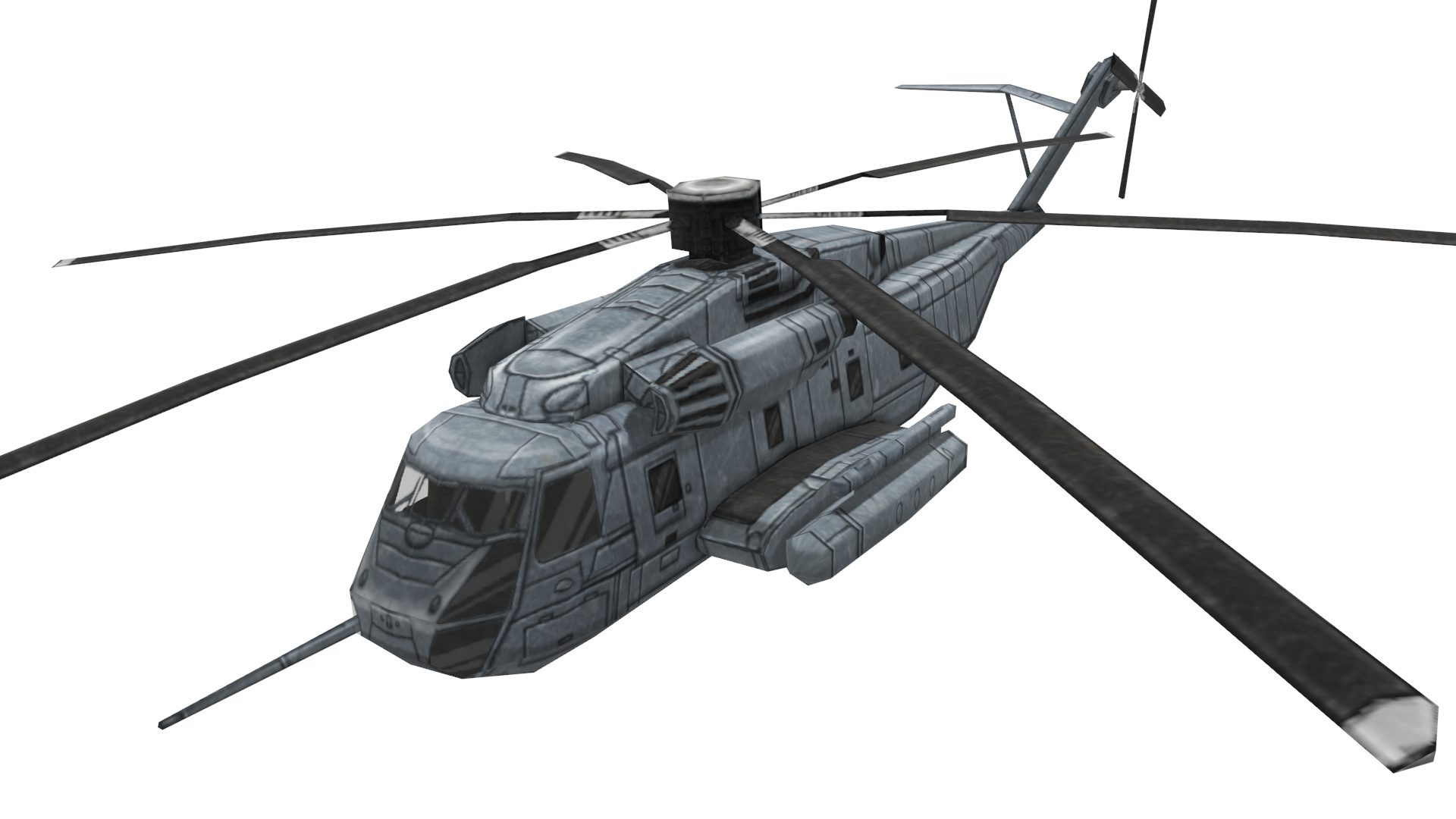 Vehicles use 512x512 texture maps. Larger helicopter is 1024x512 and the ship is 1024x1024.
